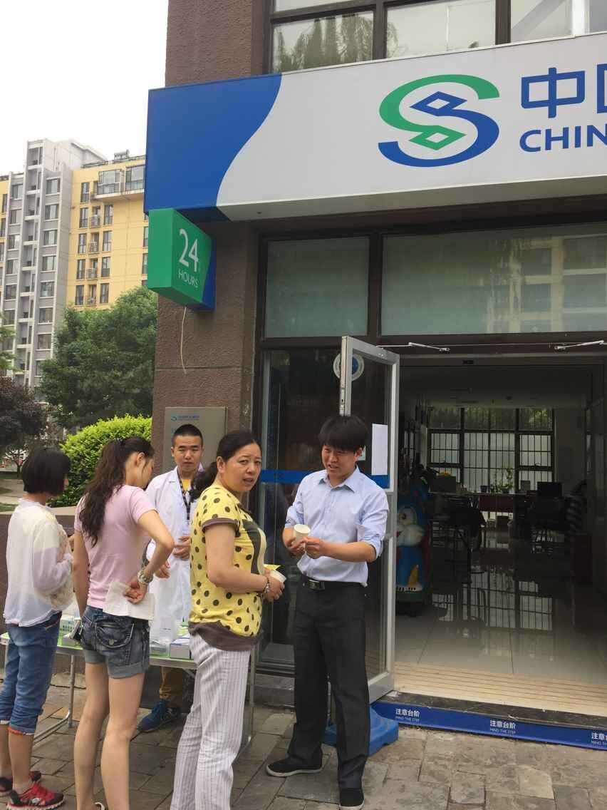 技術人員現場講解快件產品,同時演示居民自帶的菠菜、芹菜、小白菜、包菜、黃瓜中的農藥殘留;居民自帶家庭飲用水、民生銀行內飲水機中水的余氯檢測;居民自帶食用油中過氧化值和酸價的檢測。