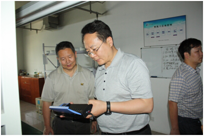 隨后,領導們參觀了儀器試劑生產中心,就有關儀器生產中可能出現的問題,進行了詳細的詢問,在桑總的解答介紹中,于軍司長還親自試用了我司生產的