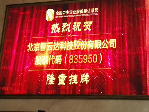 2016年7月25日,北京智云達科技股份有限公司(以下簡稱:北京智云達 證券簡稱:智云達 股票代碼:835950)在北京全國中小企業股份轉讓系統成功舉辦了新三板掛牌上市敲鐘儀式。北京智云達董事長兼總經理桑華春女士、副總經理曹文立等領導共同出席了掛牌儀式,一同見證北京智云達這一重要的里程碑時刻。