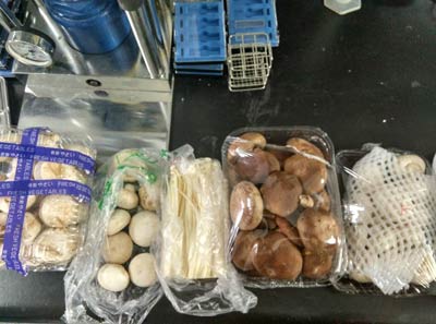 樣品:一共為九個菇類樣品。七個為網上購買菇類,兩個為市場購買菇類。