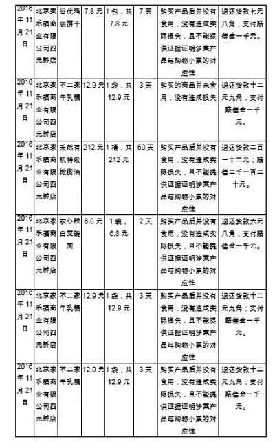 2016年11月,北京市朝陽區(qū)法院審結(jié)了11起家樂福門店出售過期食品被消費(fèi)者索賠案,結(jié)果家樂福全部敗訴,共需賠償12120元。