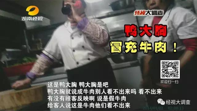 再來(lái)回顧一下,去年12月,湖南經(jīng)視記者臥底長(zhǎng)沙一家漢麗軒門店,就發(fā)現(xiàn)這家49元隨便吃的自助烤肉店,用鴨肉冒充牛肉,經(jīng)過(guò)特殊醬料腌制后,顧客根本不會(huì)察覺(jué)。