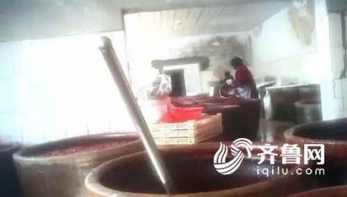 工作人員又帶記者參觀了蜜餞的腌制車間。在雜亂的車間內(nèi),擺放著很多大的陶瓷缸,里面是已經(jīng)煮好的山楂,表面漂浮著很多白色的泡沫。工作人員說,這些山楂都是用木棍來攪拌的。