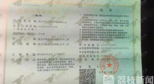 記者發(fā)現(xiàn),通過(guò)掃描涉嫌造假的食品經(jīng)營(yíng)許可證上的二維碼,顯示的信息是南京瑋創(chuàng)餐飲管理有限公司,經(jīng)營(yíng)場(chǎng)所是五老村街道漢中路、莫愁路商鋪,與現(xiàn)在食品經(jīng)營(yíng)許可證上顯示的信息完全不符。