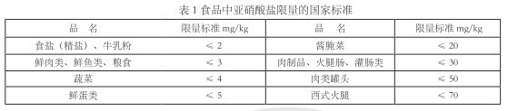 GB 15198 和 GB2760 對部分食品、飲用水中亞硝酸鹽的限量標準參考值(以 NaNO2 計)