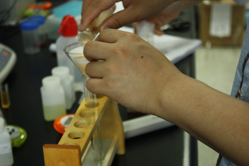 2、加8ml農(nóng)殘緩沖液,輕微震蕩搖勻。