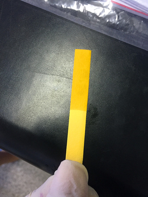 經(jīng)過檢測我們可看到姜黃試紙條沒有變色,樣品為陰性樣品,不含有硼砂。