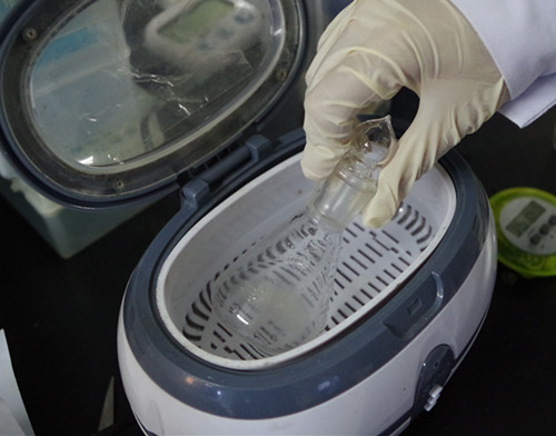 將樣品粉碎,稱取粉碎的樣品1.0 g,于50 mL三角瓶中,加蒸餾水19 mL,A溶液1 mL,充分搖動,超聲5分鐘,靜置5分鐘,過濾,濾液備用。